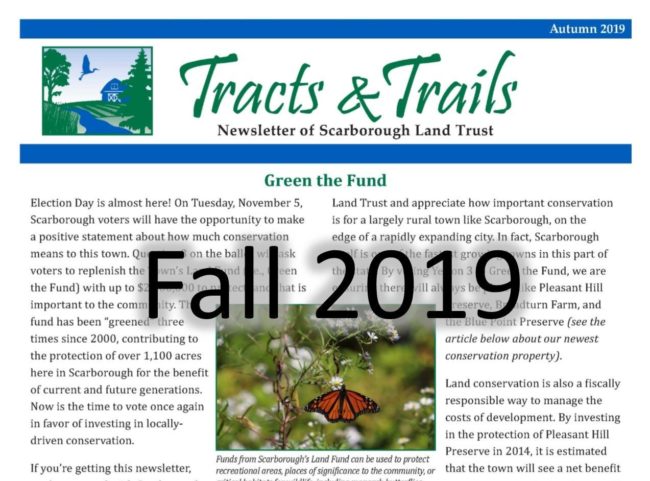 The Autumn 2019 edition of Tracts & Trails, the newsletter of Scarborough Land Trust, is now available. Click here to read about a critical voting issue in Scarborough, our new…