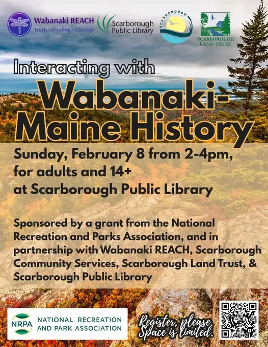 The Scarborough Public Library will host the Wabanaki REACH program in collaboration with Scarborough Community Services and Scarborough Land Trust, supported by a grant from the National Recreation and Park Association.