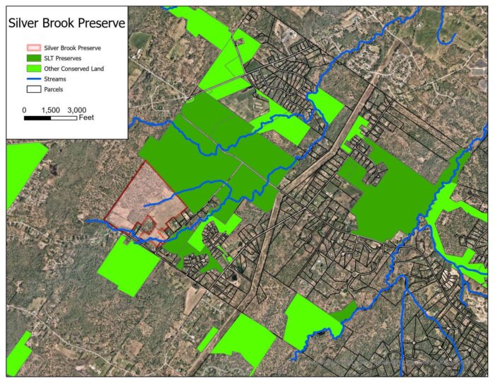 The newly acquired property features a diverse mosaic of undeveloped forests, grasslands, wetlands, and 3,200 feet of stream frontage along Silver Brook. This important natural corridor connects critical habitats and enhances climate resilience in the region.