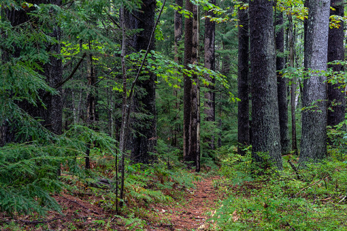 Some roots and uneven or rolling topography are present on the half-mile Town Loop Trail. The Town Loop Trail takes visitors through a mature Hemlock Forest.